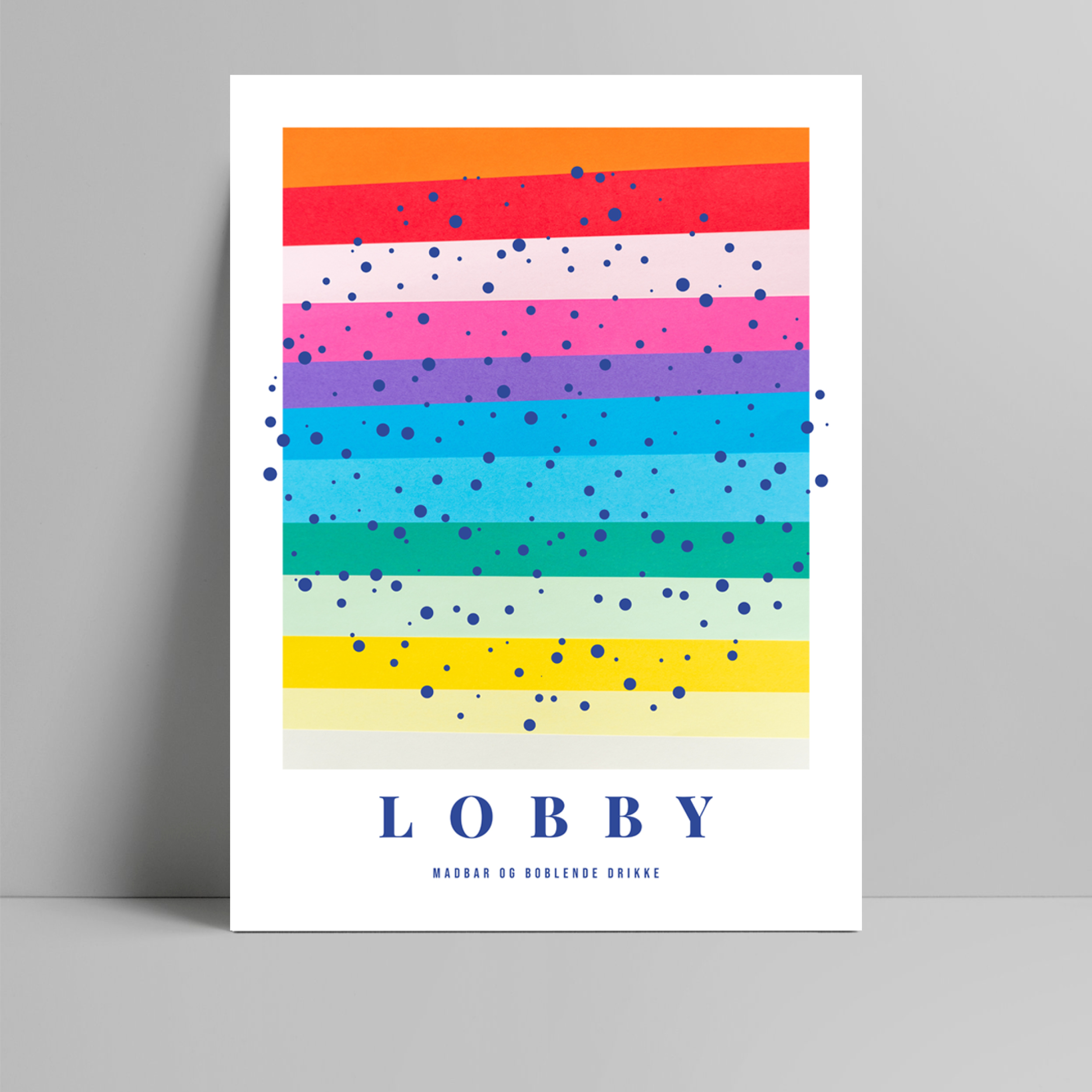 Plakater til Lobby Bar. Enkle illustrationer i lækre farver, der matcher interiør og stemning. Boblende og farverig – præcis som stemningen på Lobby.